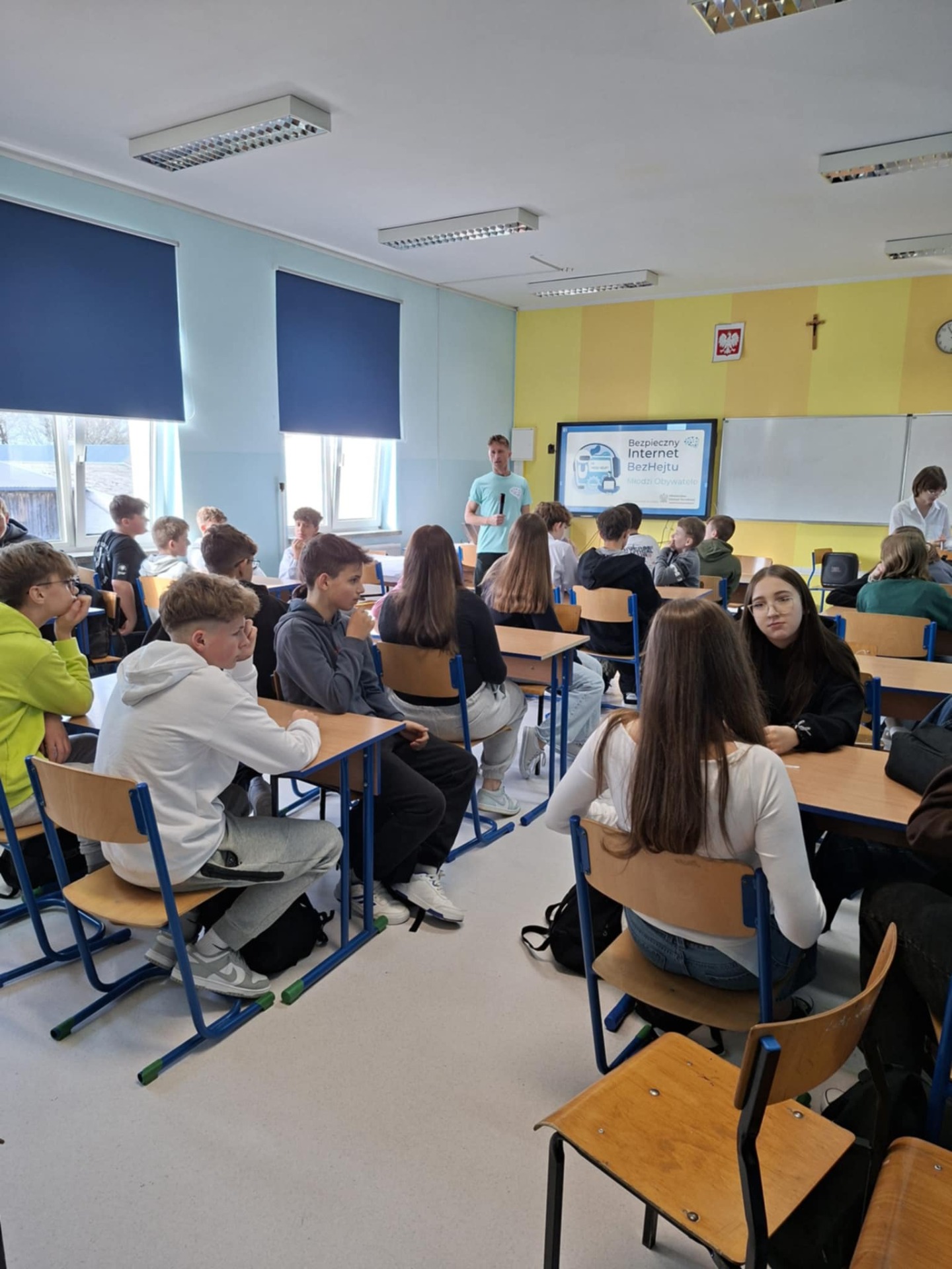 Działania w ramach programu obejmują bezpłatne warsztaty dla uczniów, nauczycieli i rodziców, które pomagają rozwijać kompetencje cyfrowe i umiejętność reagowania na hejt w Internecie. Takie warsztaty odbyły się w dniu 04.11.2025: 3 godzinny warsztat dla uczniów z klas IV-VI, 3 godzinny warsztat dla uczniów klas VII-VIII oraz 1 godzinne warsztaty dla nauczycieli i rodziców. Spotkanie było bardzo cenne szczególnie dla rodziców. Ubolewamy, że przybyło tylko 17 rodziców.