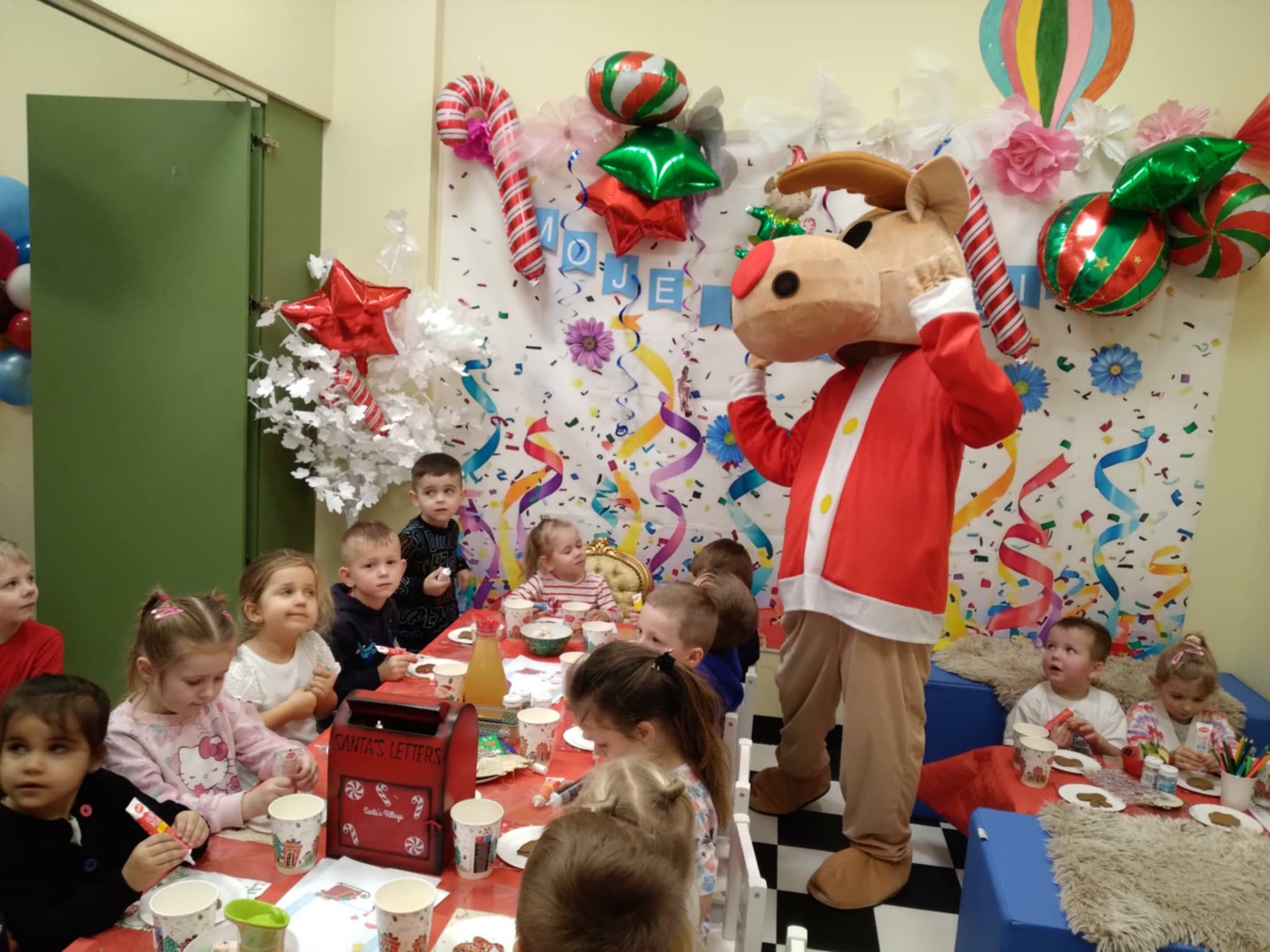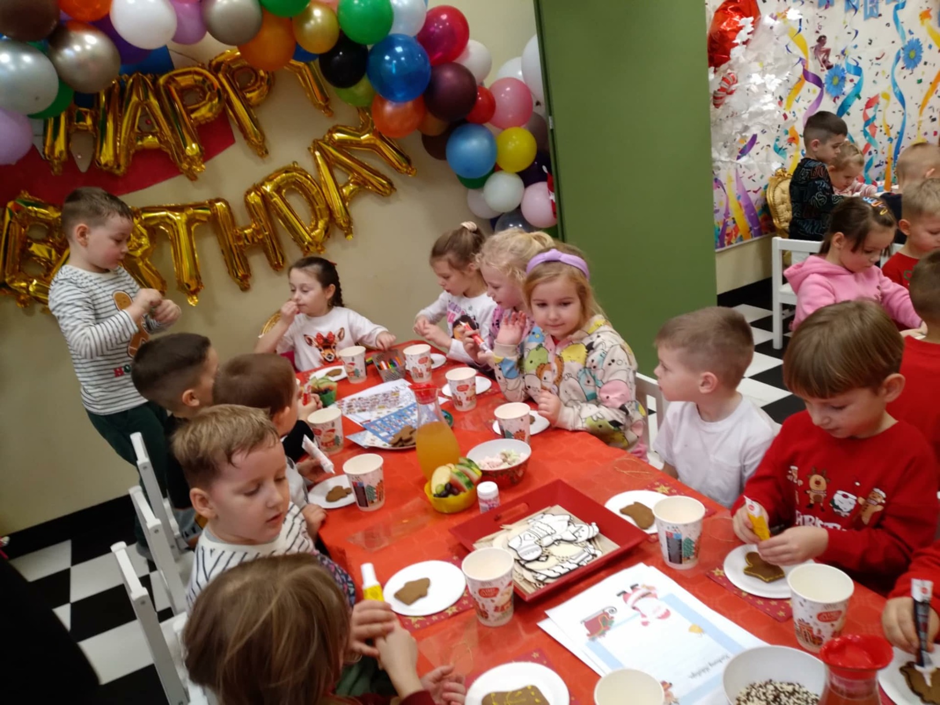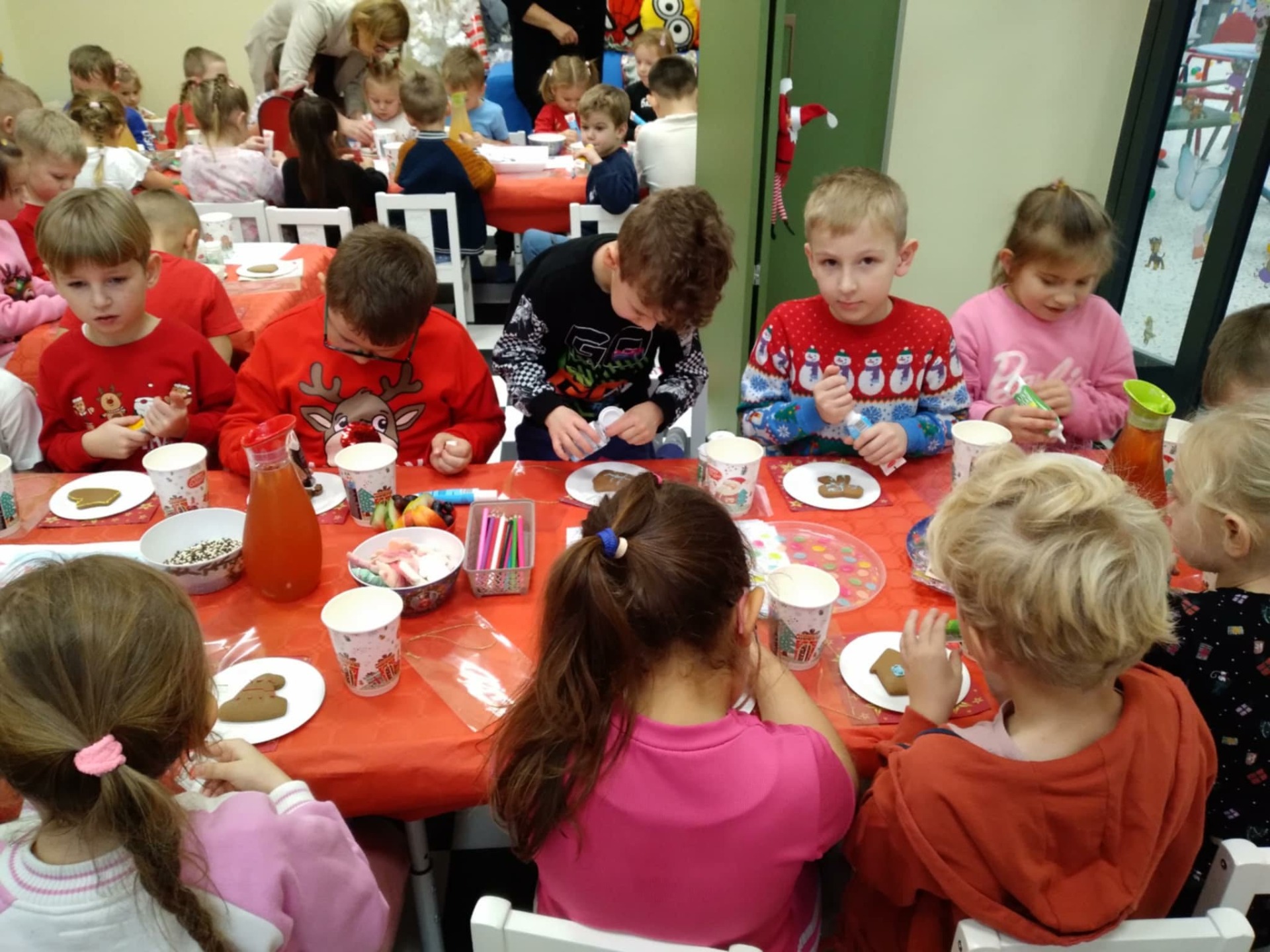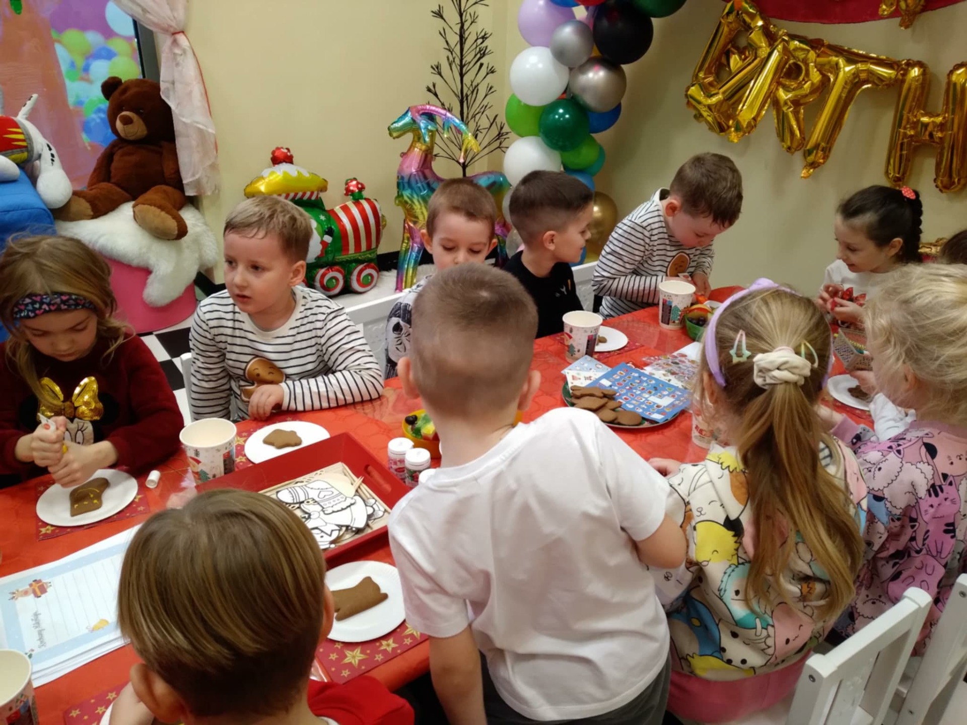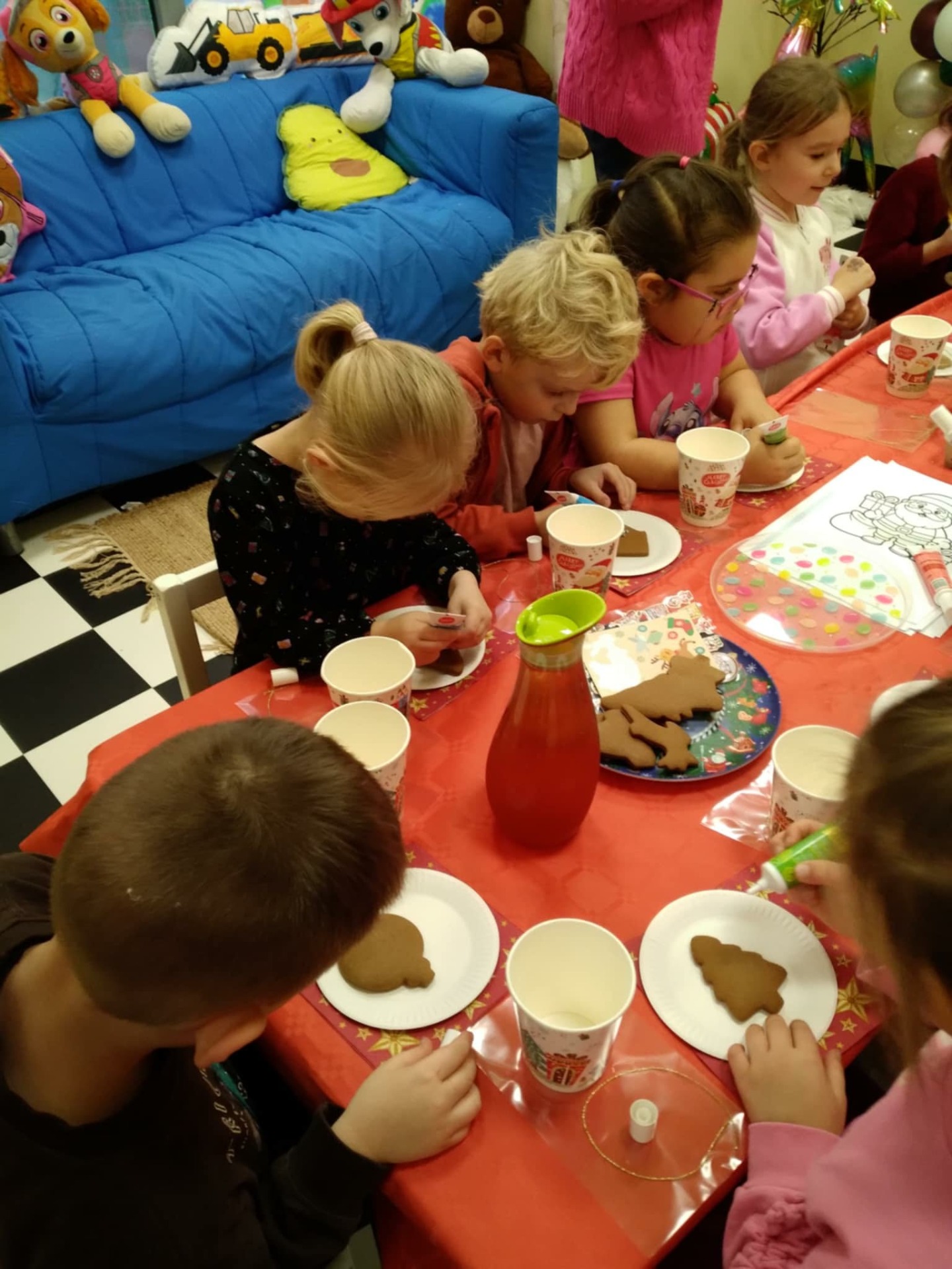 Był to wyjątkowy, pełen radości, zabaw, kreatywności, czas naszej aktywności. Każde dziecko ozdobiło swój własny pierniczek i świąteczną ozdobę oraz otrzymało świąteczny tatuaż brokatowy. Później odbyło się spotkanie z Mikołajem, który wręczył nam prezenty (na szczęście nikt nie dostał rózgi) i ciąg dalszy szalonych zabaw.