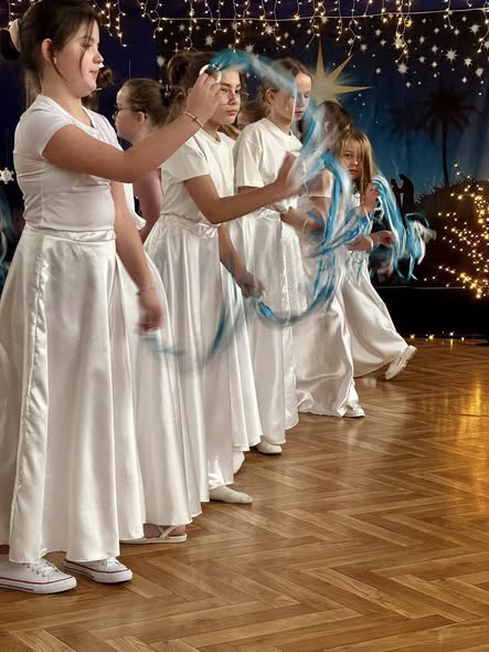 W atmosferze zbliżających się Świąt Bożego Narodzenia w naszej szkole odbyło się wyjątkowe przedstawienie świąteczne pt. „Światło, które rozświetla mrok”. Uczniowie, poprzez grę aktorską, muzykę i słowo, przypomnieli o wartościach takich jak dobro, nadzieja, miłość i wzajemna życzliwość. Spektakl skłaniał do refleksji nad tym, jak nawet najmniejszy gest dobra może rozjaśnić codzienny „mrok” i zmienić świat na lepszy. Występ został nagrodzony gromkimi brawami, a jego przesłanie na długo pozostanie w pamięci widzów: